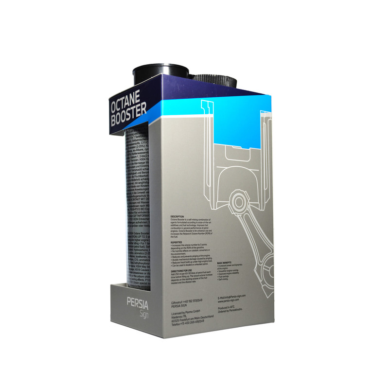 اکتان پرشیا ساین جدید به سفارش پرشیا خودرو نمایندگی BMW در ایران و با تکنولوژی شرکت GMBH آلمان تولید و بسته بندی شده است این محصول با بالاترین سطح کیفی به منظور استفاده در خودروهای بنزینی به منظور افزایش اکتان و کاهش ناک موتور می باشد